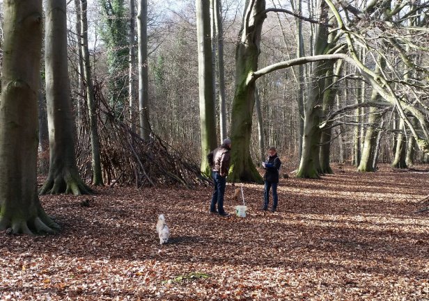 Altbäume säumen diesen Waldrand - hier konnten sich im Laufe der Jahrzehnte unter Rotbuchen (Fagus sylvatica) Sommertrüffeln erfolgreich ansiedeln, ausbreiten und sich bis heute gegenüber der Konkurrenz behaupten. Die Aufnahme entstand bei der ökologischen Erfassung dieser Trüffelstelle mit Bodenprobenentnahme unterstützt durch Sabine und Udo Hörnicke, zwei Angehörige der Forschungsgruppe Hypogäen. - Die British Mycological Society meldete 2005 eine Rekordernte bei Brighton von 80 kg unter einer alten Rotbuche...